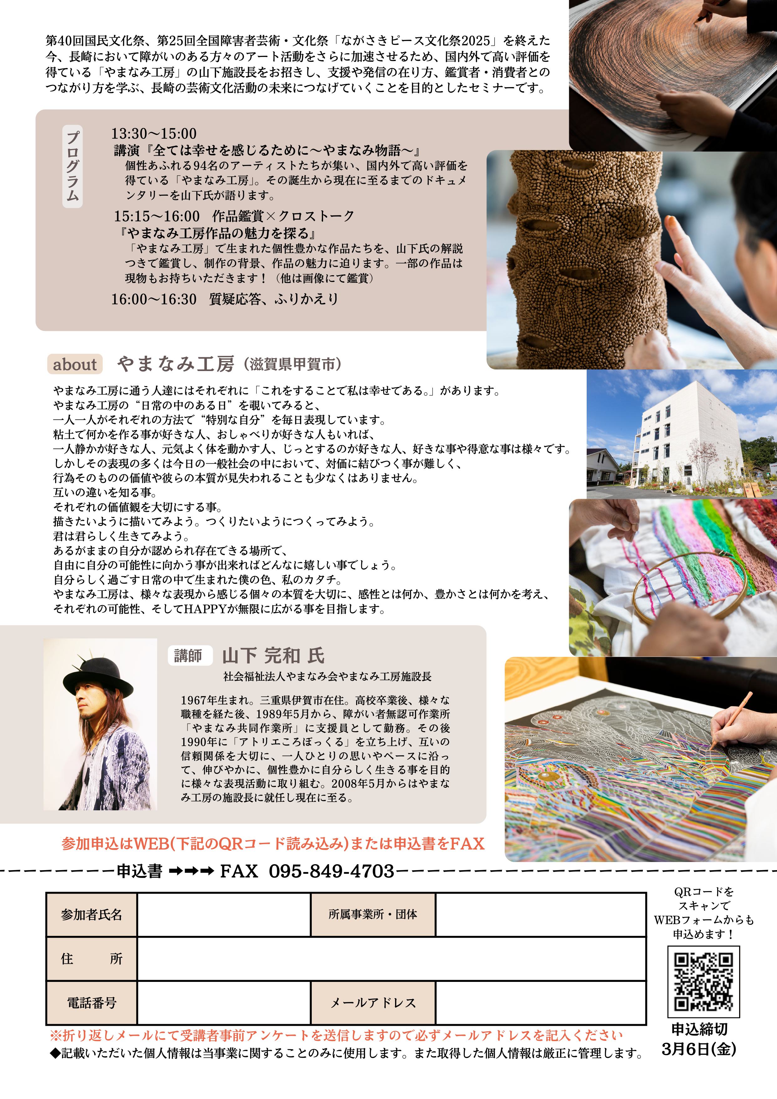 〈長崎/セミナー〉やまなみ工房施設長 山下完和さんが長崎にやってくる!