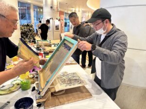 障がいのあるアーティストが描いた作品をエコバックにシルクスクリーンでプリントするワークショップを制作できます。