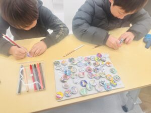 アートを活動の中心とする「工房まる」による缶バッジ作りワークショップ。ぬり絵感覚で自由に色を塗って、世界に一つだけの缶バッジを作りましょう!
