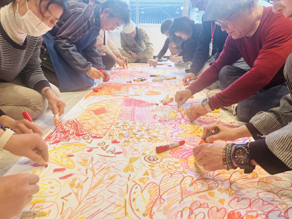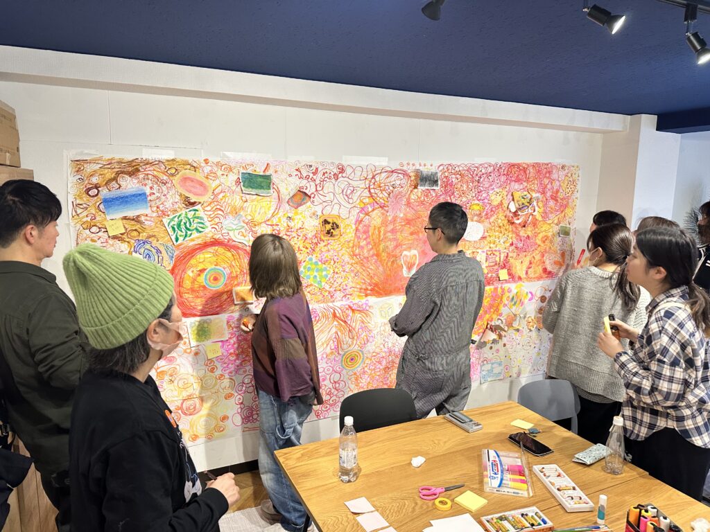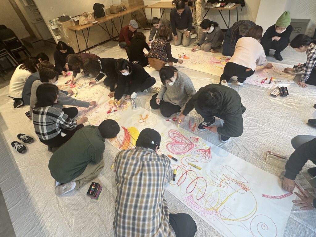 ・自分自身が模造紙に向かい、ひたすらにクレヨンやペンを動かす体験を久しぶりにしました。3つの活動を終えて、かなりぐったり。頭を使うことが多い今日この頃。手を動かし、心を震わせ、普段とは違う疲れを感じたように思います。